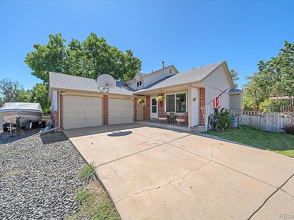 Location, location, location! This updated Arvada home in Lamar Heights is tucked away in a cul-de-sac and situated next to Sunrise Park! Enjoy the privacy, yet remain close to amenities and walking distance to Swanson Elementary School! The main level features living room with vaulted ceiling and updated kitchen with newer appliances, hickory cabinets, eat in kitchen and new slider to the back patio. The lower level has family room with wood burning fireplace, a bedroom, 3/4 bathroom and laundry room with cabinets and newer washer and dryer. The upper level has a full bathroom and three total bedrooms including a primary bedroom with views of Sunrise Park. The unfinished basement could easily be converted to a workshop, home gym, crafting area, etc. The 2-car garage is more like 2 1/2 as it is extra wide on one side. Shelves and cabinets are included. The backyard is level with a patio slab, grass and mature landscaping. Other plusses: whole house attic fan, newer AC, furnace and water heater and some new fencing. No HOA! Great area for storage on the side of the garage and the length of the driveway can handle a few extra toys as well. Just a few minutes drive to the Light Rail Station, Olde Town Arvada, grocery stores and much more!