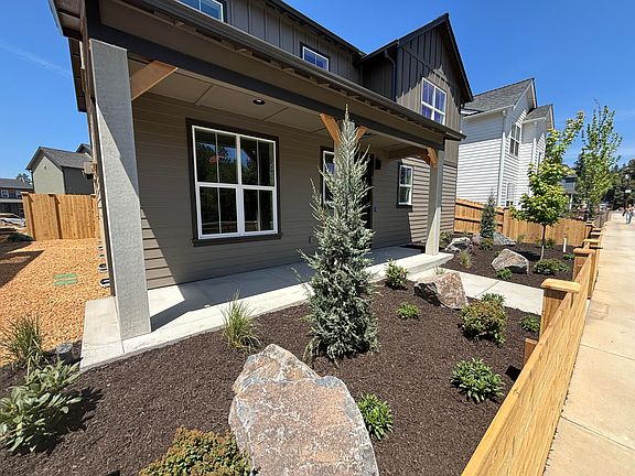 Welcome to this exquisite 2,637 sqft new home by Stone Bridge Homes NW, featuring Earth Advantage Certification for energy efficiency and healthy living. This 4-bed, 2.5-bath residence offers a primary suite on the main level. The open-concept living area includes a gourmet kitchen, perfect for entertainment. Upstairs, find two additional bedrooms and a loft. Central air conditioning, professional landscaping, and fencing complete this stunning home.