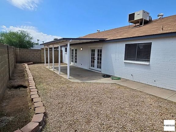 This home is adorable! Black & white decor. Vaulted ceilings, 3-bedroom, 2-bath home feels so large and spacious. White cabinets in kitchen with black accents, new white appliances, updated lighting and faucets. French doors to covered patio and no maintenance yard. 2-old carpet in 2 bedrooms and tile in main traffic areas. Washer/Dryer included. 2-car garage with cabinets.