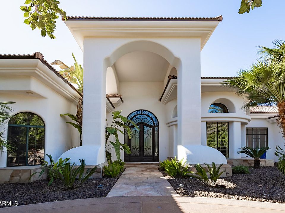 Located behind a private gate on one of the most desirable streets in Paradise Valley, is this Santa Barbara inspired custom home. At just over 1.25 acres, the property is situated to feature stunning and unobstructed Mummy Mountain views to the North and Camelback Mountain views to the South. The interior of the home features soaring, 20' ceilings, 4 en suite bedrooms, a library, dedicated living and dining rooms, and a kitchen that opens to a casual dining area, bar and family room. In the backyard, Camelback Mountain frames the gorgeous pool, surrounded by lush landscaping and mature queen palms.