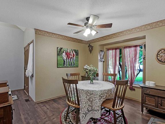 Lots of space, both inside and out in this updated 1 1/2 story home. Sitting on almost a full acre in the Rio Vista Estates subdivision, you get the unique combination of Valley Center schools, Wichita city limits, and privacy from neighbors. Featuring new exterior paint along with new flooring throughout, this 3 bedroom, 3.5 bath home is move-in ready. The kitchen is large with plenty of storage, an island and a pantry with adjacent eating space. A wood burning fireplace viewable from the kitchen and living room will make for a cozy feeling on those cold winter days. The large main floor master bedroom features a master bath with dual sinks and dual walk-in closets. In addition to the oversize 3-car attached garage with a back basement stairway, there is a 4th detached oversize single car garage in back that you can utilize in many different ways. The back patio features plenty of shade and room for entertaining along with plumbing for your gas grill. There is a well and sprinkler system along with a deep back yard that has plenty of room for the kids to run, gardening, or a future out building. Don't miss out on this amazing home! Call to schedule your private showing today!