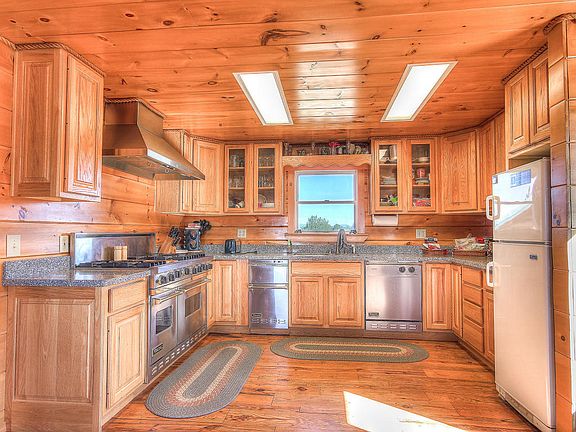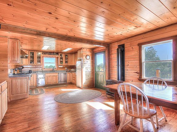 Rustic off-grid 2 bedroom Cape Cod Style LOG cabin on 55.06 acres! Also with a 4+ car garage (30'x44'). This log cabin is from Great Northern Log Homes from Connecticut. This home features a 6-Burner Viking stove, 6'' foam insulation in the ceiling, 2 dormers, stain-glass pieces, 100 year Tobacco Barn wood floors, a skylight, a wrap around deck on 2 sides of the home, solar panels and a workshp. Buyer can look into dividing 40 of the acres into 10 acre parcels. Great views of Bill Williams mountain! This is a unique opportunity!!!