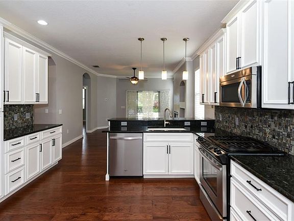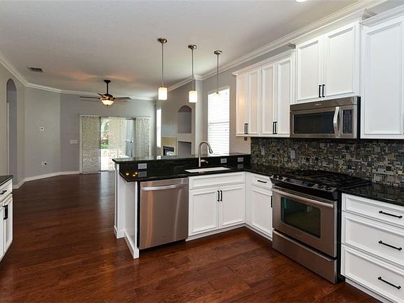 - Interior Features: Ceiling Fans(s), Eating Space In Kitchen, Split Bedroom, Stone Counters, Walk-In Closet(s), Crown Molding, Kitchen/Family Room Combo