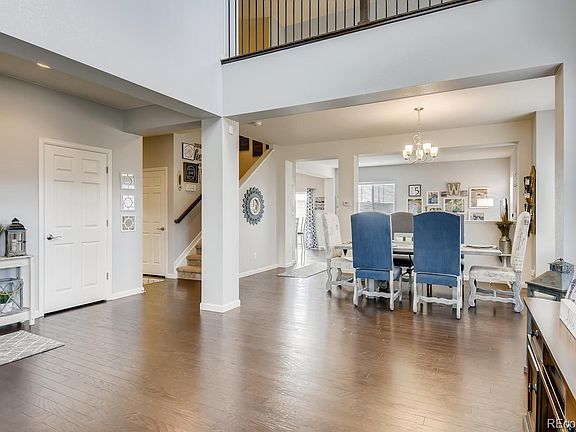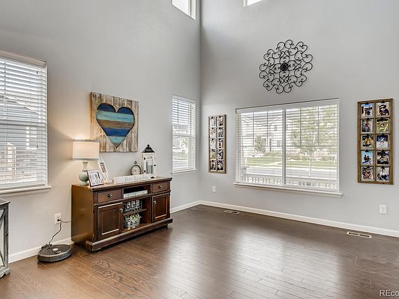 Stunning 2 story home that backs open space and sides to a greenbelt! The spectacular open floor plan boasts gleaming wood floors throughout the main level, newer custom paint, and lots of natural light with vaulted ceiling. This spacious home has 4 bedrooms, plus an oversized main floor office/flex room, plus an open loft, and a separate owner retreat off the Master suite with a fireplace. The master suite also includes a 5-piece bath, and large walk-in closet. The additional upper bedrooms are good sized and 2 of the 3 rooms have walk-in closets. The upper hall bath is upgraded with granite tops and tile flooring. The kitchen comes with granite tops, 42" upper cabinets, island, custom backsplash, stainless steel appliances, and a large pantry. The unfinished basement is ready for your finishing touches and does include roughed in plumbing. The Wheatland's is an excellent community with a great pool, wonderful trails with access right outside the home, nearby parks/playgrounds, and easy access to Aurora Reservoir & Southlands shopping/dining. This really is an all-around amazing home! Be sure to check out the 3D & Traditional Virtual Tours.