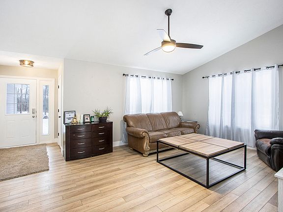 Beautifully updated home situated on 12 private acres with water setting and move in ready. Walk into a beautiful spacious living room with natural light that opens to a large dining area and gorgeous kitchen with wood countertops and a new stove and dishwasher in 2021. The main floor is perfect for entertaining with access to the deck and view of the acreage right off the kitchen. Upstairs there are two great sized bedrooms and a large bathroom with a tub. The lower level has another spaciousliving area, bonus room, bedroom, and a full bath with laundry. A two car garage finishes off this extremely attractive home located on quiet private land with great hunting