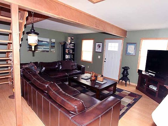 Nice Country setting and view in the Rio Grande area and just minutes away from SR 35. Open LR-K-Dining. K w/island and eating bar, lots of cabinets and counter tops. FR w/wood burner, office/exercise. MBR w/bath and walk-in closet. Upstairs loft w/2 divided rooms. Laundry room w/good storage and sink. Side and front deck. New exterior doors. Deer tree stand - great hunting. ** heating source continued - elec BB, wood burner, and 3 window AC units.