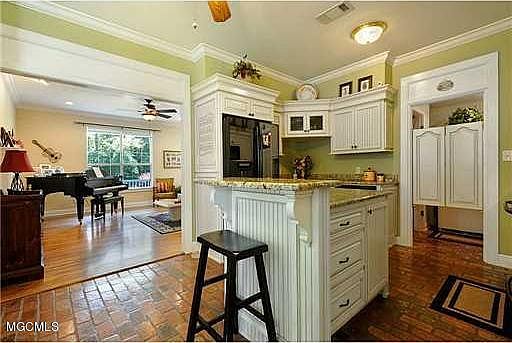 This is the one!! This stunning Acadian Home is on 2 large corner lots! This 3 bedroom 2.5 beautiful home has hurricane shutters on the windows, plus a storm shelter room The living room has a fireplace & wood floors. Brick floors in kitchen, dining & large family room. Granite, island & walk in pantry in kitchen. Main bedroom suite has wood floors, gorgeous bath & sep. office. Much more!