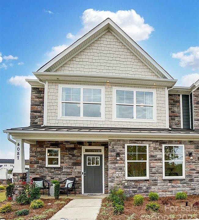 This Cary plan is an end unit with almost 1,900 square feet. The primary suite with tray ceiling is on the main level, along with a two-story great room and kitchen/dining area. The primary bath has a double-bowl vanity & a tiled shower with bench seat & semi-frameless door. All baths feature quartz counters. The beautiful kitchen has white cabinets with crown molding, quartz counters, a ceramic tile backsplash, and stainless appliances, including a gas range. Beautiful and durable Enhanced Vinyl Plank flooring runs throughout the main living areas. The upper floor has two bedrooms, a loft, and a finished storage room/bonus room. This home has a covered rear porch and a privacy fence between rear yards. Onsite New Home Specialist can provide guidance regarding estimated completion dates - however any dates provided are subject to change. Dog park & paved walking trail now open with pool, cabana & playground under construction.