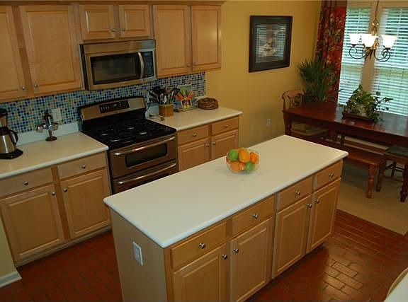 ONE ACRE lot in BW schools! Amazing open plan w/soaring ceilings* NEW brick floor in kitchen, distressed hardwoods, paint, berber carpet, gas stove, oven, SS appliances, french doors to private office, custom shelves in rec. * Private patio * Trees*