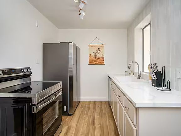 Renovated 3-Bed, 2-Bath Home in Joshua Tree Furnished or Unfurnished Option Fully updated single-story home with modern upgrades throughout. Available furnished or unfurnished to suit your needs. Property Highlights: 3 Bedrooms / 2 Bathrooms Complete interior renovation: new flooring, fixtures, and finishes Open-concept living area with fireplace and hard surface flooring Kitchen with stainless steel appliances, dishwasher, and updated cabinetry In-unit washer and dryer Private yard with barbecue setup Off-street parking for multiple vehicles Quiet location with easy access to downtown Joshua Tree and the national park. Move-in ready.