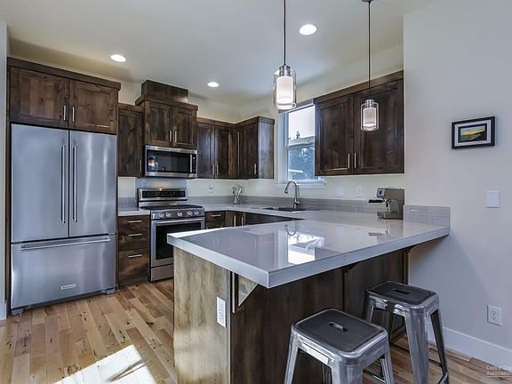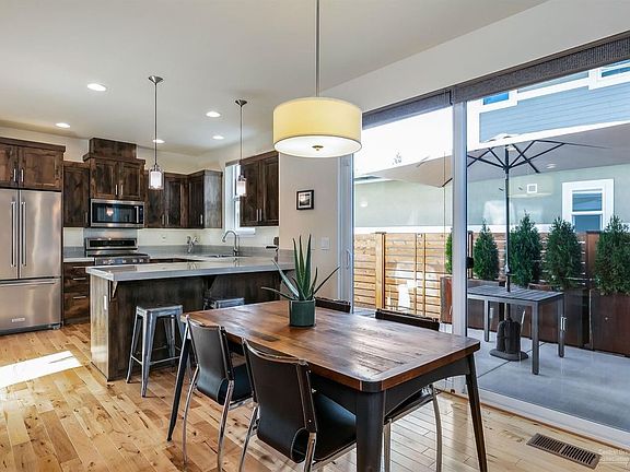 Luxury living at its finest in NW Bend! This stunning Mid-Century Modern home is inspired by Frank Lloyd Wright & focuses on creating a connection between indoor & outdoor living areas with large windows, outdoor spaces & an abundance of natural light. Solid maple hardwood floors on the main level. This is the entertainers dream home. Hangout by the gas fireplace in the great room or cook in the gourmet kitchen complete with KitchenAid appliances, knotty Alder wood cabinets, pantry & breakfast bar. Patio offers the perfect spot to BBQ with friends while soaking up the Central Oregon sunshine. Upstairs the master suite includes a double vanity sink, tile floors, tile shower & walk-in closet. Two nice sized bedrooms share a full bath. Earth Advantage certified gold home. Low maintenance, fully landscaped yard features native high desert plants. Plenty of extras. Two-car garage with storage. Located minutes from Riley Ranch Reserve & Tumalo State Park. A must see!