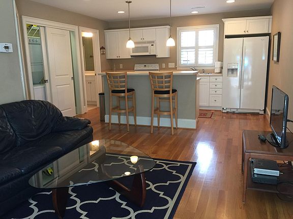 Rare find- available August 1, 2025. Neighborhood living with apartment convenience in Mayfaire's Charleston Style Parkside neighborhood in Mayfaire community. RENT INCLUDES ALL UTILITIES! Like new 1 bedroom, 1 bath furnished garage apartment with living room, flat screen TV, full size range, kitchen island, dishwasher, side by side refrigerator, washer/dryer. Separate private entrance from main home, plenty of parking on street. Overlooks a wooded conservation area and is within walking distance to Mayfaire's movie theater, shops, restaurants, grocery store. Only 2.5 miles from Wrightsville Beach! Rent includes all utilities; a/c, water, internet access via WiFi, trash, cable. 1 year lease. Smoke free property, small dog considered on a case by case basis. RENT INCLUDES ALL UTILITIES- cable, internet access by WiFi, water & sewer, garbage, heating and air conditioning. Owner may request previous rental references.