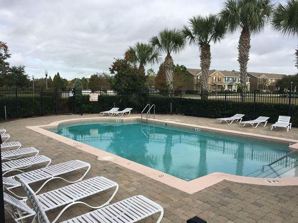 End Townhome unit conveniently located in Merrick Landing of Windermere with close proximity to nearby shopping and dining centers, Walt Disney World, and local attractions. This charming 2 bedroom, 2 bath home sits on a corner lot with an expansive yard directly across from the community pool. The unit boasts a 2-car garage with ample storage and private screened-in patio. Once inside, enjoy the updated kitchen with granite countertops, breakfast bar, washer/dryer, laminate wood flooring, and roomy guest bedroom and bath. Escape to the master bedroom and en suite bathroom with walk-in shower and spacious walk-in closet. Central Heating and Air with energy-saving Nest thermostat are included, along with lawn maintenance and periodic pest control service. Pets are welcome!