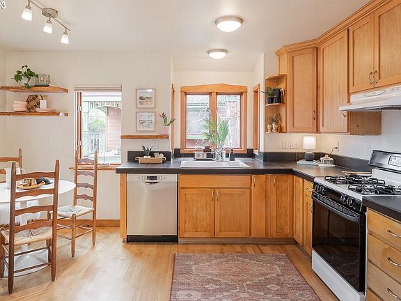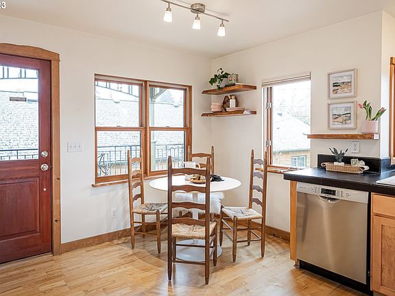 Welcome to this inviting craftsman home at Peninsula Park Cohousing. With two levels overlooking the park + ample southern windows, this 3bed/2bath home envelopes you in natural views + sunlight. Enjoy your wonderful kitchen w/ eat-in nook, sunroom off primary bed, efficient, radiant heat floors, solar H20, ample attic storage, real wood + live-edge trim, artistic detail and covered front porch. Community elements incl a spacious bike barn, guest suite, common house and low HOAs!