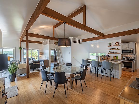 Spacious Layout: Open floor plan with bamboo flooring and glass walls that let in natural light and offer panoramic lake and mountain views.