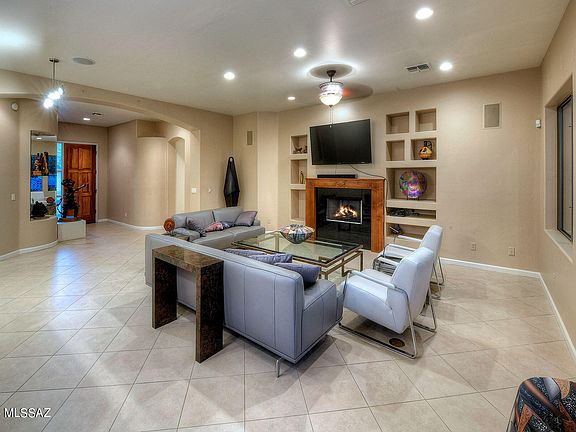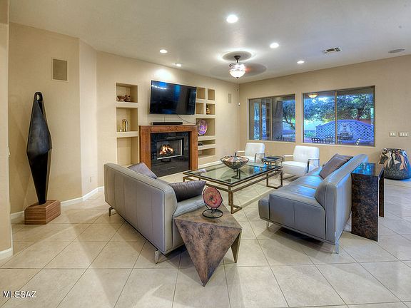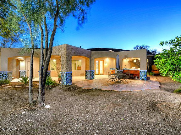 Stunning home featuresv3BR/3BA + Office in guard gated Villages of La Paloma on one of the largest lots, capturing unobstructed views of the Catalinas. Remodeled custom designed kitchen is a chef's delight, featuring gorgeous sleek cabinetry, top of line SS appliances, center island & granite countertops. French doors, from breakfast room, open to covered ramada complete w/ fantastic one-of-a-kind outdoor kitchen. Great room plan incl. gas fireplace, high ceilings, custom lighting & wall of windows bringing the outside in. It accesses resort style backyard ideal for Tucson's outdoor lifestyle, featuring multiple flagstone patios, charming fountain, mature trees & lush vegetation. Spacious dining room w/ a built-in buffet & accommodates several guests. See MORE tab... The primary bedroom suite has a fireplace, large walk- in closet & opens to a private patio. Luxurious primary bath includes two separate vanities w/granite countertops, a walk-in shower as well as a soaking tub. Split bedroom plan could easily be used as guest quarters w/two additional bedrooms & a full bath, strategically positioned for optimal comfort. The 3 attached garages incl walls of built -in cabinets & provide an abundance of storage. 1 of the attached garage spaces is separate & could be used as a studio, workshop or to store your golf cart. The community pool/spa & ramada are ideal for socializing with your neighbors. HOA includes garbage collection, street maintenance, pool/spa, guard gate + more. Conveniently located close to La Encantada shopping center which includes an upscale grocery store, several restaurants & shopping. See documents for La Paloma CC. Welcome Home!