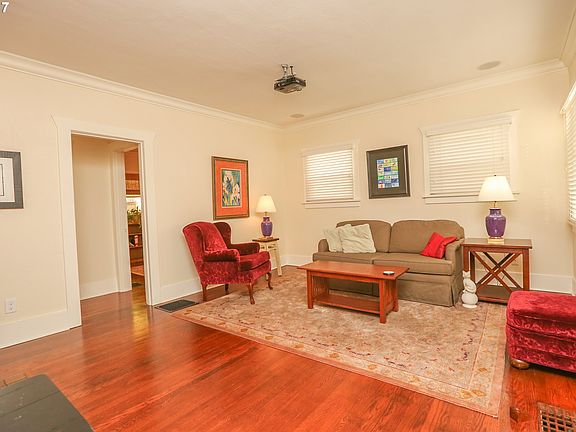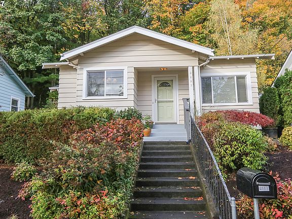 Charming Bungalow full of natural light Back opens to gorgeous greenspace Cozy livingroom w gas fireplace & built-in projection TV Updated kitchen incl. all appliances Spacious basement w room for storage or workspace Gas line to deck for BBQ High end window treatments. New: garage deck fencing interior/exterior paint windows refinished hardwoods Updated insulation electric plumbing & roof. Remodeled bath. Easy Access to I5 Babur & more