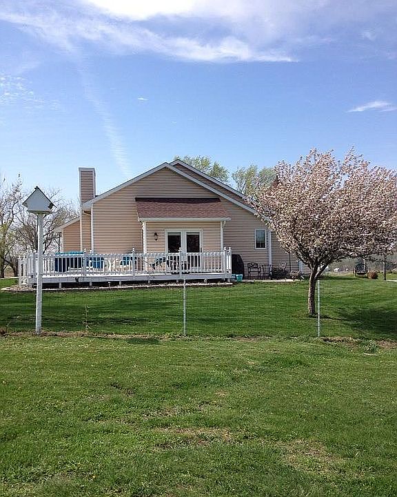What an amazing acreage that's been meticulously taken care of! Beautiful views everywhere you turn, with sunrises and sunsets that you won't want to miss! This home is turn key with so many updates. The main floor boasts all new composite wood plank flooring, and the bedrooms have new carpet. The gorgeous kitchen was just recently updated with new flooring, granite countertops, glass backsplash, sink, and new appliances. Enjoy the beautiful living room with 14 ft ceilings and the cozy fireplace on those chilly nights. The basement is an open slate for more bedrooms, family room, and plumbing is already in place for a third bathroom. Home has a reverse osmosis system, radon mitigation system, and a forma drain in the basement. Seller has also recently installed a new water softer, hot water heater, and new ADT alarm system. Outside you'll find a beautiful asphalt driveway that was recently sealed, and also a newer well pump. You can spend time in your very own vineyard, harvest apples, peaches or pears from your fruit trees, walk the paths that are mowed, or work on hobbies in the 40X60 machine shed. Shed has a dedicated shop area along with framing done for a bathroom, office, and loft area. Floor drain and water are already provided in the shed. There is also an animal barn, 16X32, that has heat and air and could be a great he/she shed. This is a turnkey property with all appliances and primarily all furnishings that can stay. Pristine acreage, call today to make it your new home!!