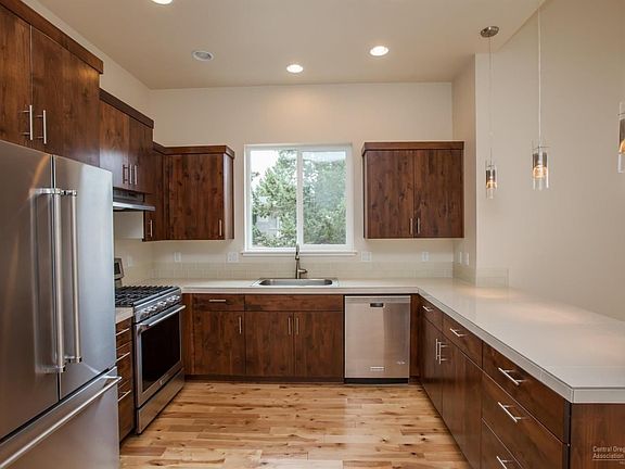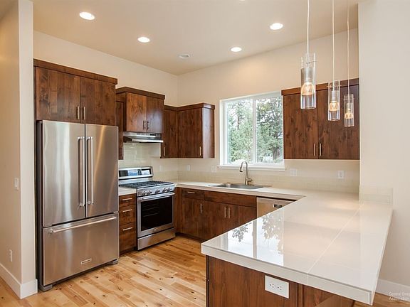 Arbor Builders' Clearstone neighborhood will include new homes conveniently located in Northwest Bend, a short distance to the new Riley Ranch Regional Park and Tumalo State Park. The homes feature Frank Lloyd Wright's Unsonian and Mid-Century Modern designs. This stunning one level home, the popular Elm plan, features an Eichler style roof, hardwood floors, SS appliances, tile counters and Earth Advantage. There is an abundance of natural light creating a feeling of openness. Photos of a similar home.