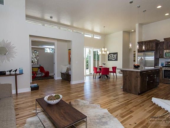 Arbor Builders' Clearstone neighborhood will include new homes conveniently located in Northwest Bend, a short distance to the new Riley Ranch Regional Park and Tumalo State Park. The homes feature Frank Lloyd Wright's Usonian and Mid-Century Modern designs. This stunning one level home, the popular Elm plan, features an Eichler style roof, hardwood floors, SS appliances, tile counters, and Earth Advantage. There is an abundance of natural light creating a feeling of openness. Photos of a similar a home.