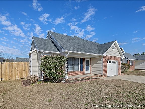Don't miss an opportunity to own in a centrally located neighborhood close to several Fort Liberty gates, retail, entertainment, All American Freeway & 295 Extension. This lovely 3-bedroom 2-bathroom ranch-style home offers a spacious, finished bonus room to use as the next owner sees fit! When arriving at the home you are greeted with a single-car garage, cozy, covered front porch area, storm door & freshly painted front/garage doors & shutters. Enjoy an open-concept living & dining space w/ a fireplace & cathedral ceiling. Owner suite has an en suite w/ a shower/tub combo. New roof installed Nov 2019, stainless steel appliances in 2024, & the interior/exterior of the home was painted in 2025 to include kitchen cabinets & bathroom vanities. Seller is leaving refrigerator, washer & dryer as gifts for new owner. Nicely sized, privacy fenced backyard for entertaining family & friends w/ patio & side entrance to home w/ storm door.