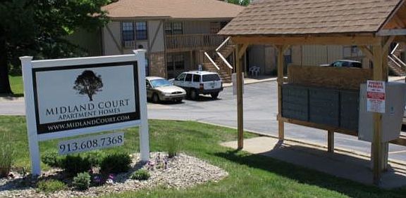 Newly remodeled and spacious 1 bedroom apartment homes make you feel right at home. Conveniently located at the SE corner of Shawnee Mission Parkway and Pflumm. Very quiet with plenty of trees, just walking distance from a beautiful pond and walking trail. You will love living here.Conveniently located between I-35 and I-435, Midland Court is next door to restaurants, entertainment and a grocery store. Very large shopping center close by with Target, Kohls, Old Navy, Home Depot, Lowes, Pier One Imports, Johnny's Tavern, Bed Bath and Beyond, and a Wal-Mart Supercenter. 24 hour maintenance, all electric appliances, new decks and landscaping just to name a few of the great features of Midland Court. Each master bedroom has two walk-in closets and the kitchen comes with it's own pantry for plenty of storage. You don't even need a kitchen table with the built in breakfast bar. Low utility bills and great residents make Midland Court the place you would love to call home.Please call our friendly staff today at 913.608.7368 and reserve your new home! We look forward to meeting you. Our tenants mean the world to us.12 month leases with availability end of July