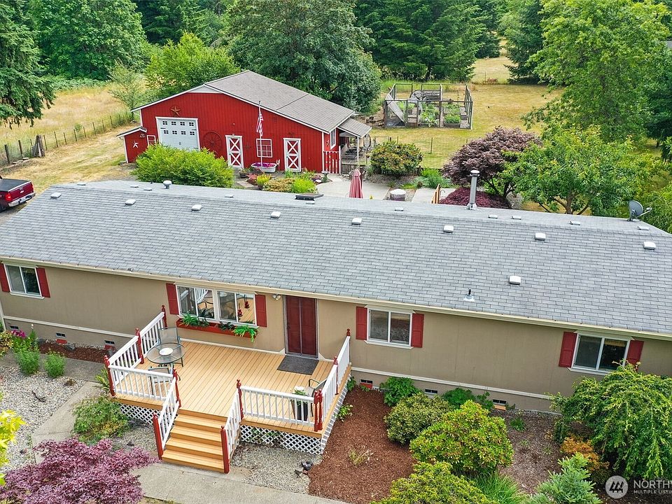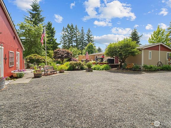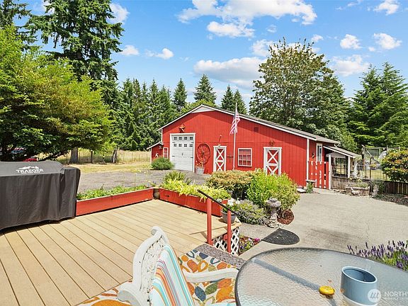 Charming 3-bed, 1.75 bath home on 1.03 private, fully fenced acres. Enjoy 1,675 sq ft of living space featuring a spacious kitchen open to dining and living areas, a primary suite with walk-in closet and private bath, and a cozy wood stove. Outdoor features include Trex Deck, hot tub, mature landscaping, concrete patio/walkways, and fenced garden. Gated drive leads to a versatile shop with workshop, storage loft, studio, planting room, lawn equipment space, car parking, and covered area by dog run. Private well/septic. Great location - minutes to Costco, I-5 and shopping.