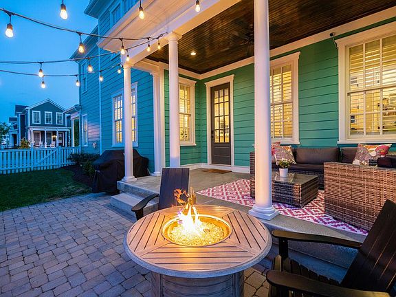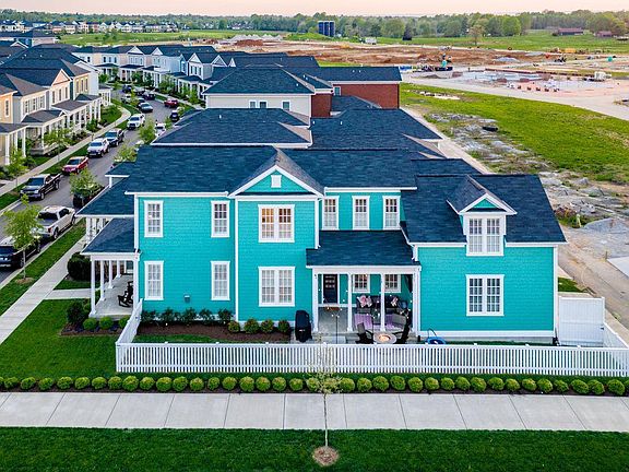 Beautiful Home on a Corner Lot with a Large Fenced Yard in highly sought after Norton Commons! This 4 bed/3.5 bath, 3,100+ finished sq ft charmer is full of upgraded features- Hardwood Flooring throughout, Custom Plantation Shutters and Window Treatments, GE Cafe appliances with Advantium Oven, Custom Built-Ins, Finished Basement, Geothermal Heating/Cooling. The covered front porch welcomes you into the open living room that boasts custom built-in bookcases encasing the gas fireplace for all of your display and storage needs. Kitchen has granite countertops, GE Cafe Refrigerator with hot water and Keurig coffeemaker feature, Gas Range with double oven, Advantium microwave/convection oven, custom cabinetry with dovetail soft close Shaker Style drawers. The window-filled dining area is open to the kitchen for easy entertaining. The large side porch has an oasis ambiance with string lights over a custom paver laid patio and fenced green space, perfect for pets and family to enjoy. Step back inside on the first floor to view the half bathroom, large walk-in pantry with ample shelving space, and built-in drop zone cubbies. Upstairs, you will find a cozy Master Suite retreat with a large walk-in closet, built-in headboard shelf, dual vanities, and double showerheads. Make your way down the hall to the large full bathroom with tiled shower/tub combo and two additional sizeable bedrooms. Easy laundry access on the 2nd floor with a nook area for making laundry chores a breeze. In the newly finished basement, you will find an open family room perfect for entertaining and movie nights! Recessed area for large TV or projector screen, built in surround sound, wiring for projector is in place. Access a "hidden room" via a custom bookcase door! Basement is complete with a full bathroom and 4th bedroom (egress window), currently being used as an office. Additional storage available below the stairs and in the utility room. The oversized 2-car garage features 9 ft' doors with insula