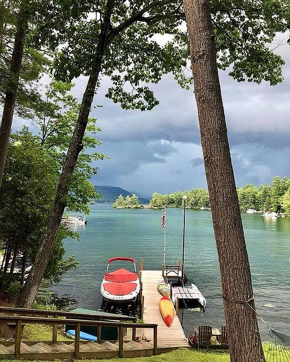 Idyllic setting with stunning lake views from this seasonal log home on Lake George in sought after Huletts Landing. Located in a calm protected bay with 58 feet of shoreline and a dock. Offering 3 bedrooms, living room, dining area with stone fireplace, kitchen, large deck, bunk house and detached single car garage.