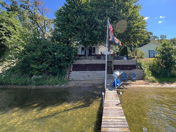 Charming cottage on all sports Fish Lake. Beautiful lake view, sandy beach and westerly sunsets. Move in and enjoy lake living from boating to fishing and swimming. Covered porch to nice entrance with large closet. Large primary bedroom with walk-in closet and lake view. Spacious living room and dining room overlooking the lake with windows on three sides. This cottage has a lake view from nearly every room. Newer flooring, low maintenance vinyl siding, replacement windows, updated electrical, spacious deck, septic 2000, well 2005 and furnace/central air 2006. This cottage includes all appliances: new refrigerator, gas stove, washer, new dryer and pier. Additional items include some furniture and furnishings. Additional lot across the road included.