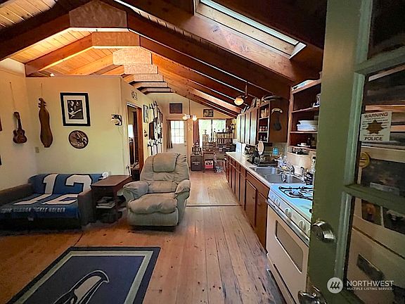 Do you love outdoor adventures like hiking, fishing, or maybe just want to have a place to get away from it all, unplug & rest? This Charming cabin is in one of the most beautiful private parks off the North Cascade Highway, wonderfully wooded but open enough for the sun to shine through. Sit outdoors on the large covered front porch or at the fire pit. Two outbuildings for studio, bunkhouse or storage; property has room for RV/boat parking with water & disposal pipe. The cabin has a metal roof, pine floors, skylights, kitchen & 3/4 bath, there is a wood stove, newer wall unit propane heater, propane appliances, lighting and is fully wired for a generator. Short-term rentals allowed in park. FINANCING possible through Sound Community Bank.