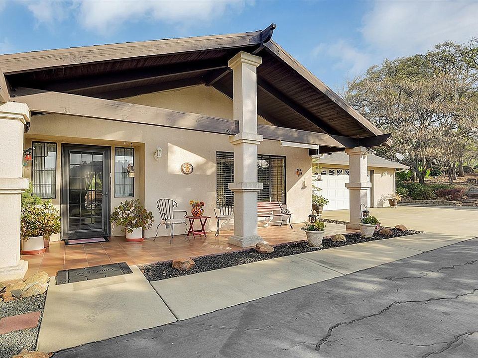 What a great time of year to see this house, all the beautiful landscaping is in bloom. This single level home sits privately off the road. Great room style with plenty of room to entertain with cathedral ceilings, Picture windows and cozy woodstove make this place so comfortable to enjoy. Large master bedroom with on suite bath, walkin closet & lots of light from the sliding glass doors leading to the back yard. Now check this out, the 32X30' SHOP includes a family room/game room complete with sliding glass doors for your cave entertainment hideaway:)and the other side is the shop with custom cabinets, work bench, 220 electricity & water! All landscaping is on irrigation water including the back yard with a huge lawn play area, a multitude of producing fruit tress and a playhouse/guesthouse too! All this behind your lovely gated entrance and paved driveway, just down the street from Bald Mountain Nursery makes this a great commute location too.