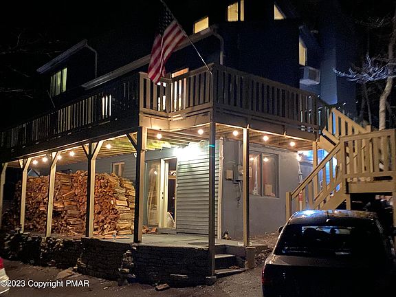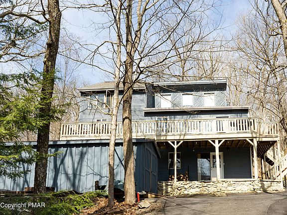 Total 1854 Sq Ft. SO MUCH POTENTIAL....with some TLC you could have your dream home. 3 Bedrooms (Partially finished 4th Bedroom) 2 Bath Contemporary with Open Floor Plan. Cathedral ceilings. Large Primary Bedroom. Newly installed splits for heat/AC. Woodburning stoves and propane heat for backup. 2 Car Garage & Storage Shed. Lower level is above grade just waiting to be finished. Home is being sold AS -IS. All this located in Saw Creek Estates voted #1 Pocono Community which includes, indoor and outdoor pools, indoor and outdoor tennis courts, restaurant, fitness center, ski hill, lakes and much more.
