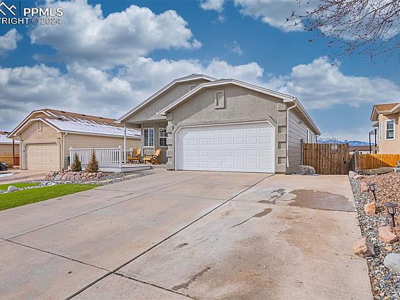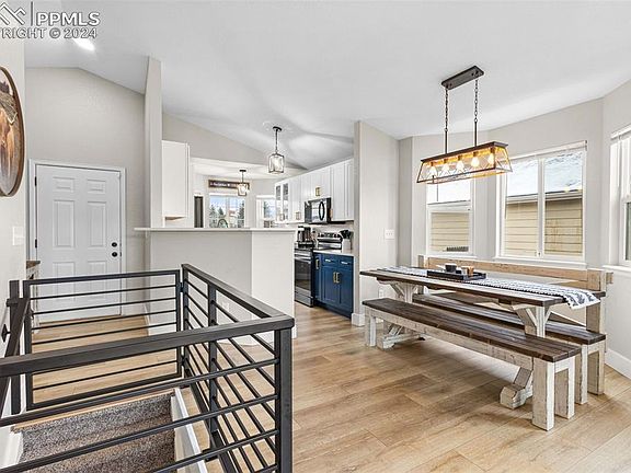 Welcome to your dream home in the heart of convenience and beauty! This centrally located 3-bedroom, 3-bathroom home has stunning views of Pikes Peak and is just moments away from bustling shopping centers. Step inside to discover a meticulously updated interior, featuring brand-new flooring throughout the entire home. The kitchen is a chef's delight with a perfect blend of sophistication and functionality. Revel in the elegance of new white upper and navy blue lower cabinetry, complemented by matte black steel appliances, granite countertops, and chic gold pulls. The living room is a cozy retreat, complete with a fireplace and a walkout to a covered patio where you can unwind while soaking in the views of Pikes Peak. The primary bedroom is a sanctuary of luxury, featuring updated flooring, a fireplace, and a fully remodeled spa-like bathroom, and a convenient spacious closet. The second bedroom has plush new carpeting, adding warmth and comfort to the space. Entertaining is a breeze in the family room, equipped with its own fireplace and a convenient walkout to the backyard. The third bedroom, also adorned with new carpet, offers versatility and style. Step outside into the xeriscaped backyard oasis, where low-maintenance landscaping meets outdoor luxury. Unwind around the fireplace or watch your little ones or pups play in the fenced-in playpen – a perfect space for both relaxation and fun.