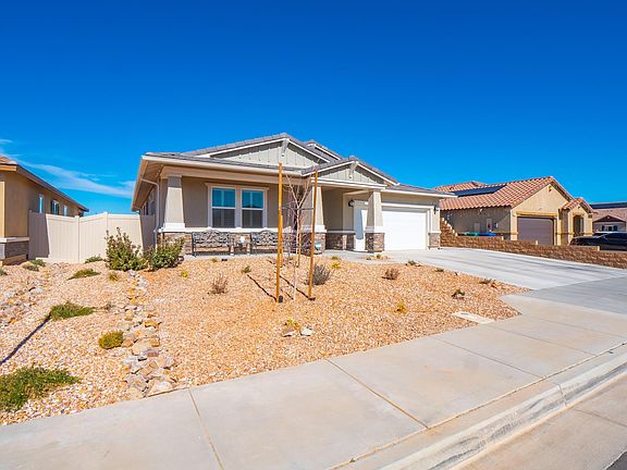 Upgrades Galore is this stunning single story, newly built home. This KB Home was just recently built in 2020 with over $130,000 in upgrades making it a dream home. There are 9ft ceilings and beautiful tile floor throughout the entire home. The open concept kitchen is out of a magazine with expansive counters, subway tile backsplash, double oven and a walk in pantry. There is additional recessed lighting, ceiling fans, and plantation shutters making the home feel bright and fresh. All four bedrooms are great sizes with lots of closet space. The backyard has a large built in patio over. This home is energy efficient with xeriscape in the front and backyard, tankless water heater, and 12 PAID for SOLAR panels! There are too many upgrades to list! There is no HOA or mello roos. Call for your appointment today!