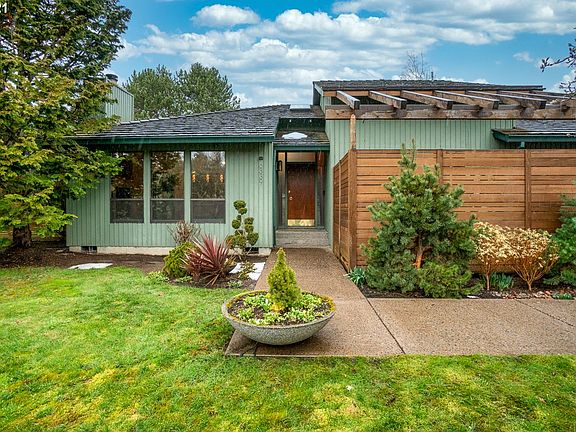 Stunning one level home with an open and vaulted floor plan that has a mid-century modern vibe. Updated kitchen with mahogany cabinets, quartz counters and high-end appliances. Master bedroom with private deck. Remodeled master bathroom with walk-in shower. Hardwood and cork floors. Custom woodwork throughout. Incredible 3-car garage added in 2012 plus an additional 2-car garage (total 5 car garage). Beautiful fenced yard with a private courtyard and deck. Great neighborhood and location! [Home Energy Score = 3. HES Report at https://rpt.greenbuildingregistry.com/hes/OR10188925]