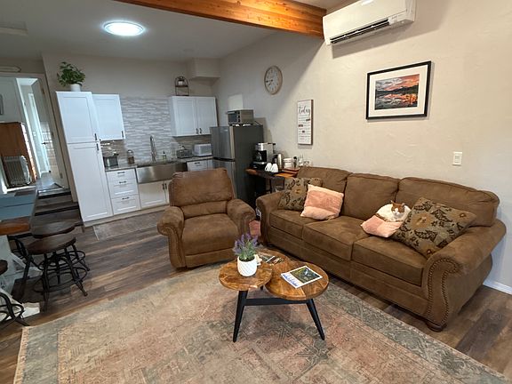 Available 10/1/25 Attached mother inlaw, built out in 2020. The 4 person barrel sauna is for your private use. Beautifully furnished with stainless steel farm sink, barn door bathroom and and lots of lighting. The property is located less than 20 min from the airport and has easy access to down town and the airport in Redmond.This unit offers a small back yard for your furry friend. This unit is best suited for a single professional but can accommodate two. The sauna is for your private use. $100 for utilities including internet, garbage, water, electricity. The deposit and pet fee are due upon signing the lease. Please provide two rental refrence, credit score and proof of income. If you plan on bringing your pet, there is a cleaning fee for the pet which is not a pet deposit but a pet cleaning fee of $300. There is a family of four with children in the main house, the walls have 2ea-3/4" Sheetrock but some noise can be heard. This is a shared property and the tenant in the main house is responsible for yard maintenance. The unit is pretty private and separate but you will be sharing this property. The back patio is private with a fire pit and is fenced off from the main house by a 3' fence, the front patio is covered but not as private. There is room for 1 vehicle in the driveway and room on the street for visitors or a second car. The nieghborhood was built in 1979 and has 1/2 acre lots. It's a safe neighborhood and it's close to the hospital, 97 and the airport. DT is a 7 min drive. Can send Airbnb link for pictures