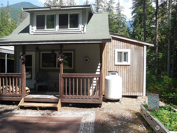 Great cabin in the Cascade River Park, ready for full time living or use as a rental. This cabin is set up to enjoy the outdoors with a extra-large carport for your RV or truck. There is a fire pit in the back to sit around to make memory's while enjoying the mountain view. There is also a large shed to use as storage, shop or as a garage. The cabin is set up with a generator to charge the batteries that run the cabin. The front porch faces south for your morning coffee. The main room has a TV and kitchen set up. The bath also has a washer/dryer. The bedroom is upstairs. There is a lean-to off the back of the cabin for storage and to keep the generators dry. This property is being sold as is.