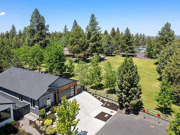 Discover the epitome of modern living in this custom-built home by RD Building & Design, located in the desirable NW Bend. This single-level residence features 3 bedrooms & 2 baths, with the primary suite separated from the other 2 bedrooms. Situated on a corner lot, the property sits adjacent to acreage, providing beautiful views & a sense of tranquility. The home boasts an oversized 2-car insulated garage with access to a side patio, as well as extra parking space for a car or RV, complete with a 30-amp outlet. The fully fenced & terraced backyard is a private oasis, featuring a covered patio perfect for outdoor entertaining. Inside, the home is adorned with custom lighting, Bosch stainless steel appliances, and quartz countertops. The Great Room is a focal point, with vaulted ceilings, a gas fireplace & a solid walnut custom mantle, adding warmth & elegance to the space. Professionally landscaped front & back yards complete the picture, making this the home you've been looking for.