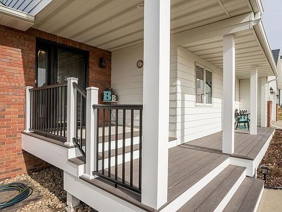 Enjoy wonderful views on a 2-tier Maintenance Free deck - 32 X 12 feet long. This home has incredible updating done throughout. The kitchen has beautiful black granite countertops with cabinets tastefully redone. The hardwood flooring runs throughout the kitchen, dining & living area. The dining room & living room both have larger than normal patio doors to the deck in back. Also on the main floor is an office, a 3/4 bath, laundry, and a bedroom. Upstairs is a master bedroom suite with master bath, 2 more bedrooms & a full bath. In the lower level, you will find a family room with an amazing wet bar & walk-out to the backyard patio. Another bedroom can be found down also. The garage can fit UP TO 4 cars - and is 843 Sq. Ft. The best of all is the yard - very private and has great views to the west. Lots of trees surround this fenced back yard and can be enjoyed sitting on the oversized deck from above. Come see this home situated in a quiet cul-de-sac.