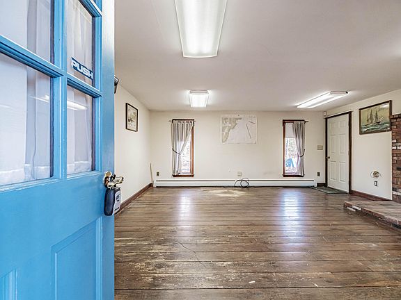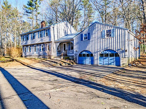 EQUITY BUILDER: Deferred maintenance provides a great opportunity to invest a little and get a huge return. Spacious rooms, pine and hardwood floors, hearth & wood burning fireplace, 4 bedrooms & 2.5 baths. 2 car garage with lots of storage above. Private 6 acre setting set well back from the road. Needs some trim & clapboard repair, paint inside and out & some tile and carpet updating. 2 additional 2 car garages near the road need new doors but would be great for workshop or home business. Very livable 'as is' while you do the work.