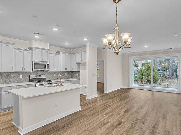 The Sunflower model is as bright and cheery as its name at just over 1,500 square feet. This adorable floorplan is the perfect combination of comfort and efficiency. Enter through the covered porch into the great room with open kitchen and family room. Behind the kitchen is a spacious pantry leading into a hallway with a convenient laundry room and a entrance to the two-car garage. You will also find two bedrooms and a full bathroom, offering the perfect separation from the Owner's Suite. View the beautiful Bridgewater Sunsets on the rear covered porch just off the family room. The Owner's Suite offers a private oasis complete with an generous Owner's Bath and large walk in closet. Make The Sunflower your picture perfect home and while enjoying The Good Life at Bridgewater.