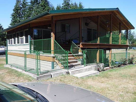 Originally a pole building with upstairs built into living space, downstairs is garage/shop including bathroom/shower. Home upstairs has 2 nice sized bedrooms, 2 baths, utility room, open living room and kitchen/dining area. Patio door opens to large covered deck. Sunroom space for plants to grow and room to sit and drink coffee in the morning. Home sits on .61 acres.