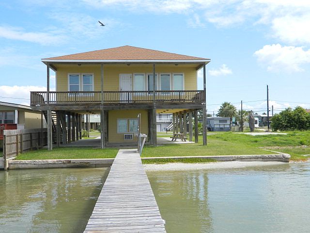 Live large on Copano Bay with this home built in 2008 with 4 bedrooms/ 3 baths up & a yoga or exercise room, plus a 1/1 downstairs. This 2250 square foot home comes furnished with a nice pier to catch your dinner and watch the beautiful sunsets. Granite counter tops, really nice master bedroom with walk in closet, double sinks. Main living area is open and great for entertaining all your friends & family. Rockport, TX is your home sweet home.