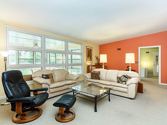Mid-century modern, McKay-built home on private circle, recently appraised, just 1.5 blocks from Washington High School and Bever Park Trail. Quality construction, open design, light-filled rooms, plus 3-season porch opening to large backyard. Living room features masonry fireplace with gas insert. Adjoining dining area has two built-in hutches. Spacious kitchen, 2 pantries, and updated appliances (Kenmore gas range and SS fridge, Bosch DW). Master bedroom has large closets, a small wall safe, and full bath with whirlpool tub. Home has a second full bath and three more bedrooms; smallest bedroom serves as a den/office and includes bookshelves and a wet bar. Full basement has dropped ceiling and provides TV area/workout space, bookshelves, workshop, ample storage, and laundry area; Whirlpool HE washer, Kenmore gas dryer, and Frigidaire dehumidifier included. Buyers' agents welcome. FSBOHomes offers FREE buyer support, including an on-site real estate attorney who will answer questions and complete a purchase agreement. Call today for private showing.