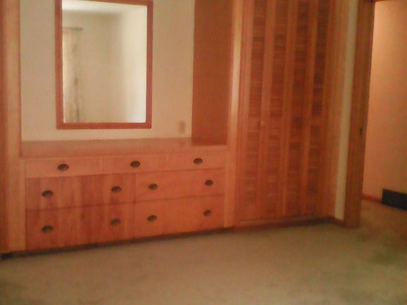 Nice home, spacious rooms, new drinking water system. New flooring. Interior doors are pocket doors, never in the way. Beautiful woodwork. Master bedroom has built in dresser with mirror. Extra bedroom and extra laundry room in basement. There is a laundry closet with stacked washer and dryer on main floor. Main floor bathroom is roomy with two sinks, tub and shower, and laundry shoot for basement laundry room. Family room in basement. Another finished room in basement and an unfinished room (great for hobbies, wood working, painting, whatever! New basement storm windows. Underground sprinkler system. Backyard has nice cement patio. Trees are trimmed. The one car garage is large.