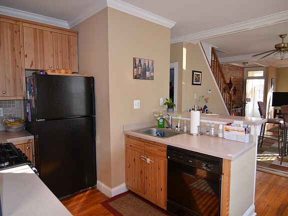 Capitalize on this opportunity, add instant equity / value with all the many options you have with a 6+ foot deep lower level running the length of the ENTIRE home. So many options!!! Option 1) simply drywall and carpet for added living space; Option 2) you may add 2nd full bath (rough in already in place) to have bath on every level, Option 3) add 3rd bedroom, Option 4) with a walk out basement in place, finish & possibly rent out lower level and have someone help pay your mortgage Option 5) Turnkey, move in and simply enjoy everything completed and options in the future to add value if desired; Option 6) purchase and to your rental portfolio.... Home also offers off street Parking, Deck off master, Half bath main level, central A/C, end of group offering a ton of natural light, Remodeled Kitchen and bath, exposed brick wall on main and upper level, refinished wood floors, and so much more~this charming & luminous end of group home features an abundance of natural light that transcends throughout 9 south facing windows as well as pours through 2 upper level and 1 main grandiose front window that extends from floor to ceiling, like the trendy exposed brick wall which cascades along 2 stories of the north wall. Beautifully appointed brick fa~ade, pristine marble front steps, new HVAC in 2019, remodeled kitchen in 2017, remodeled bathrooms in 2015, 1 with deep sink, tile floor, deep soaking tub with tile surround. Waterproofed, full depth basement with bathroom plumbing roughed in, exterior entrance, 3 windows and endless possibilities. The sky truly is the limit & you can enjoy that view from your 2nd story deck. Fully fenced backyard with gated off-street parking & conveniently located home with great highway access. Don~t take our word for it, simply knock on the doors of your new neighbors to hear all the wonderful things they have to stay about living on this magnificent block. Venture inside to be greeted by your private vestibule, which is perfect for city living home deliveries, shelter from the weather when coming home and even energy efficiency. Convenience is the name of the game and the wide open concept living room /dining room arrangement & main level half bath continue to compliment & deliver as desired. Plus spacious Bedrooms, 1 with a cathedral ceiling & 2 closets and another with a walk in closet & access to a private, spacious, 2nd story deck; both featuring ceiling fans. Attention to detail throughout from crown and chair molding, subway tile backsplash, matching appliances, breakfast bar & additional built in storage along the staircase. If an extraordinary city lifestyle with an affordable price is the opportunity you seek...this gem is even more than you bargained for~.