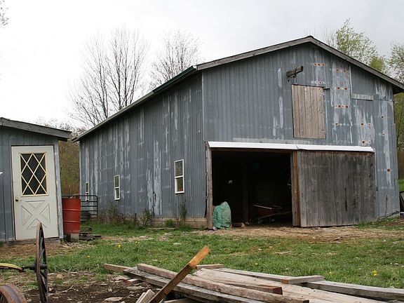 Amish homestead 21.5 acres 2 bedroom ranch home on full basement. Thermo windows, vinyl sided, drilled well and septic installed. Will need electric, heating and plumbing installed. 24 x 56 barn with hay loft. Mostly fenced. Quiet location. REDUCED $119,500 R-720