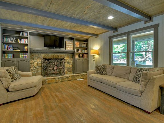 ^^ Attention all Lake Lovers, This Turn-key Lakefront cabin features recently updated interior with 5 bedrooms, and 4 full bathrooms . Detached 2 car garage with plenty of storage above , Large Kitchen / dining area is perfect for entertaining . Master on upper level , ensuite bathroom with large tile shower and free standing soaking tub. Terrace level includes large game room, 5th bedroom/ bath and kitchenette , perfect for guests coming in from the lake . Other eye-catching features include granite counter tops , hardwood floors, tile showers, rock accent walls, large wrap around porches, outdoor fire pit and hot tub, beautiful stone walk way to lake , Lake Blue Ridge frontage and views , and dock ! Only seconds from downtown Morganton and just a short 5-10 minute drive to shopping and dining in downtown BR. Grossing over 50K a year in nightly rentals . Lake days are calling, what more could you ask for !