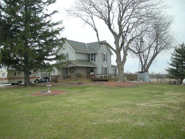 Large four bedroom with eat in kitchen , wrap around porch and a three car garage .This property has a hot tub, take a soak and watch the corn grow from your backyard.